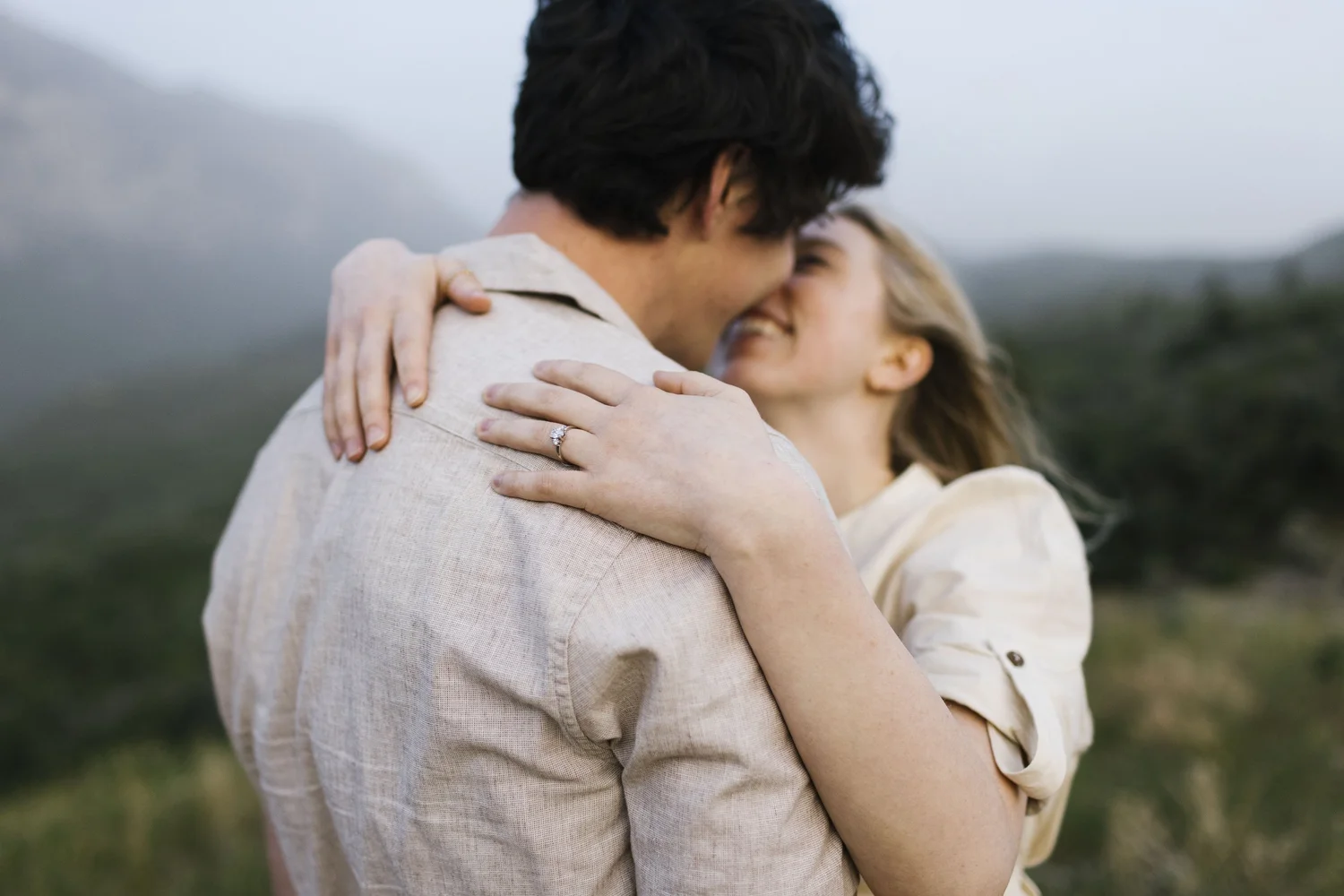 On a warm June evening, Braden invited Elle to dinner at the Foundry Grill. What she didn't know was that he had secretly planned every detail of what would become one of the most memorable nights of their lives. After a wonderful meal together, Braden casually suggested they take a hike to watch the sunset. As they climbed the hill and made their way through the brush, Elle had no idea what awaited her. When they arrived at the spot, she was stunned. Candles flickered in the golden hour light, a beautiful rug was laid out beneath a carefully arranged display of flowers, all set against the breathtaking view. In that perfect, windswept moment, Braden got down on one knee and asked Elle to marry him. With a huge smile she couldn't contain, she said yes.